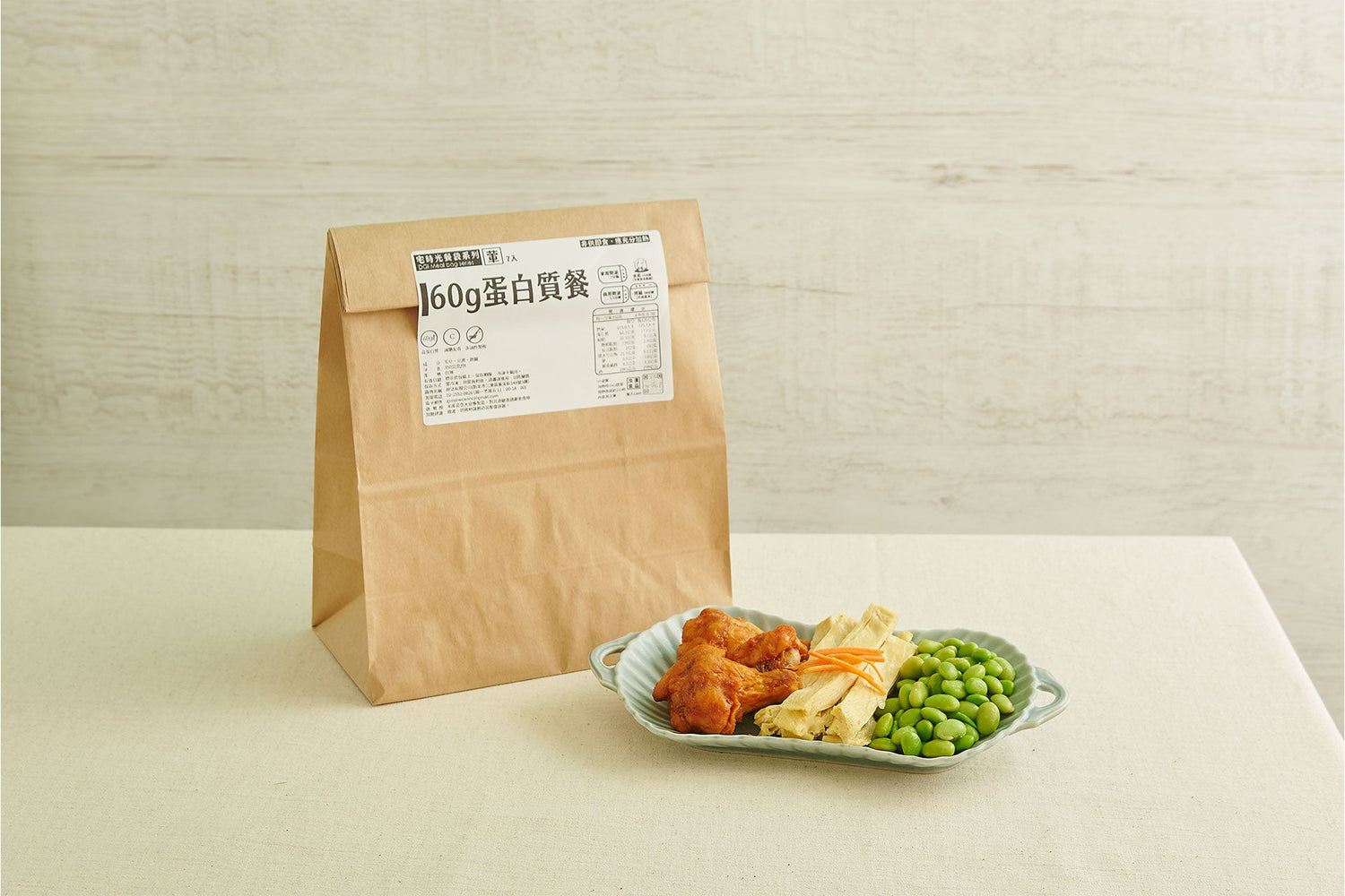 產品內容包括非炸豆皮、毛豆、雞腿,皆為低糖高蛋白食品,蛋白質與油脂比例比雞蛋還低。